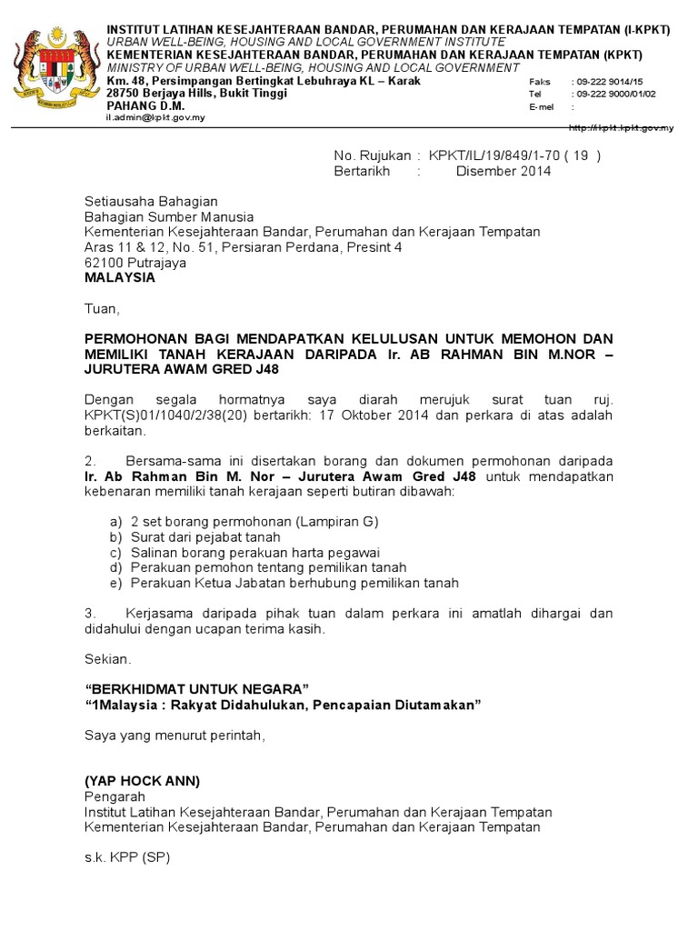 Kementerian Kesejahteraan Bandar Perumahan dan Kerajaan Tempatan. Nama Syarikat 2. Contoh surat rasmi permohonan tanah kerajaan surat vv cute766.